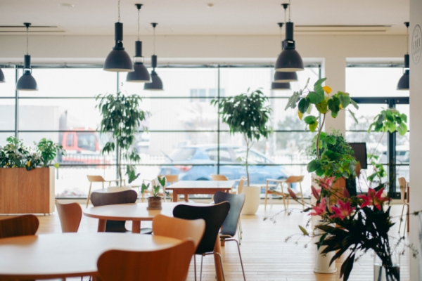 商談スペースが一人につき一部屋設けられた、欧米主流のスタイルを取り入れています。天井が高く開放感のある店内には、北欧デザインのインテリアや音響計画にもこだわり、リラックス出来る落ち着いた雰囲気になっています。