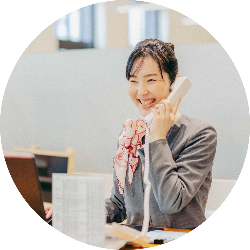 来店された方にお茶を出したり、店内の美化や事務仕事などを行なっています。常にお店全体を見渡して、お客様の居心地を第一に考えることが私たちの仕事です。担当のお客様という線引きがない分、一日に幅広く、たくさんの方と接します。たった一度の接客でお店の印象が決まってしまうので、ほんの少しの時間でも、「来て良かった」と思ってもらえるような空間作りを心がけています。